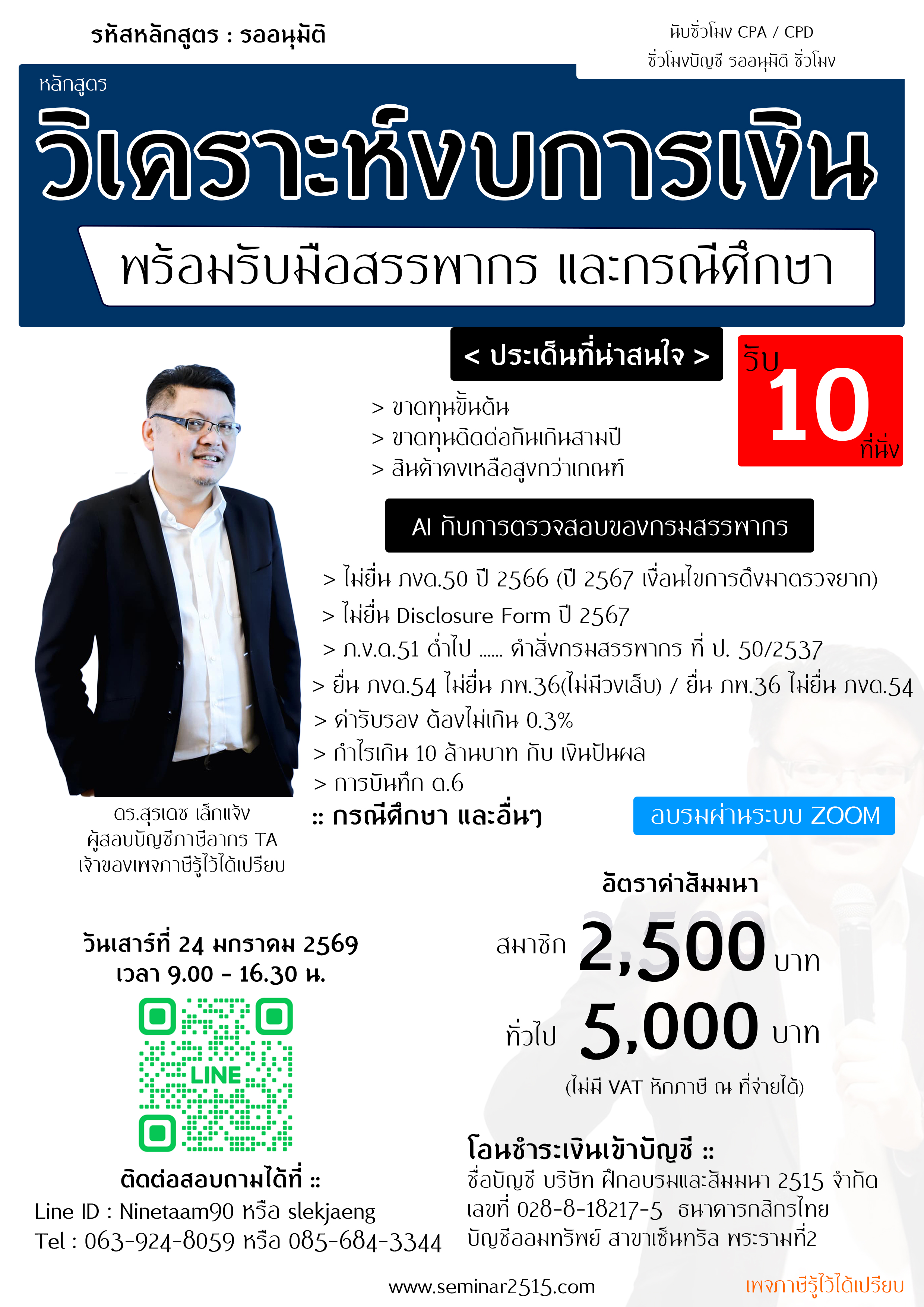 วิเคราะห์งบการเงิน พร้อมรับมือสรรพากร และ กรณีศึกษา