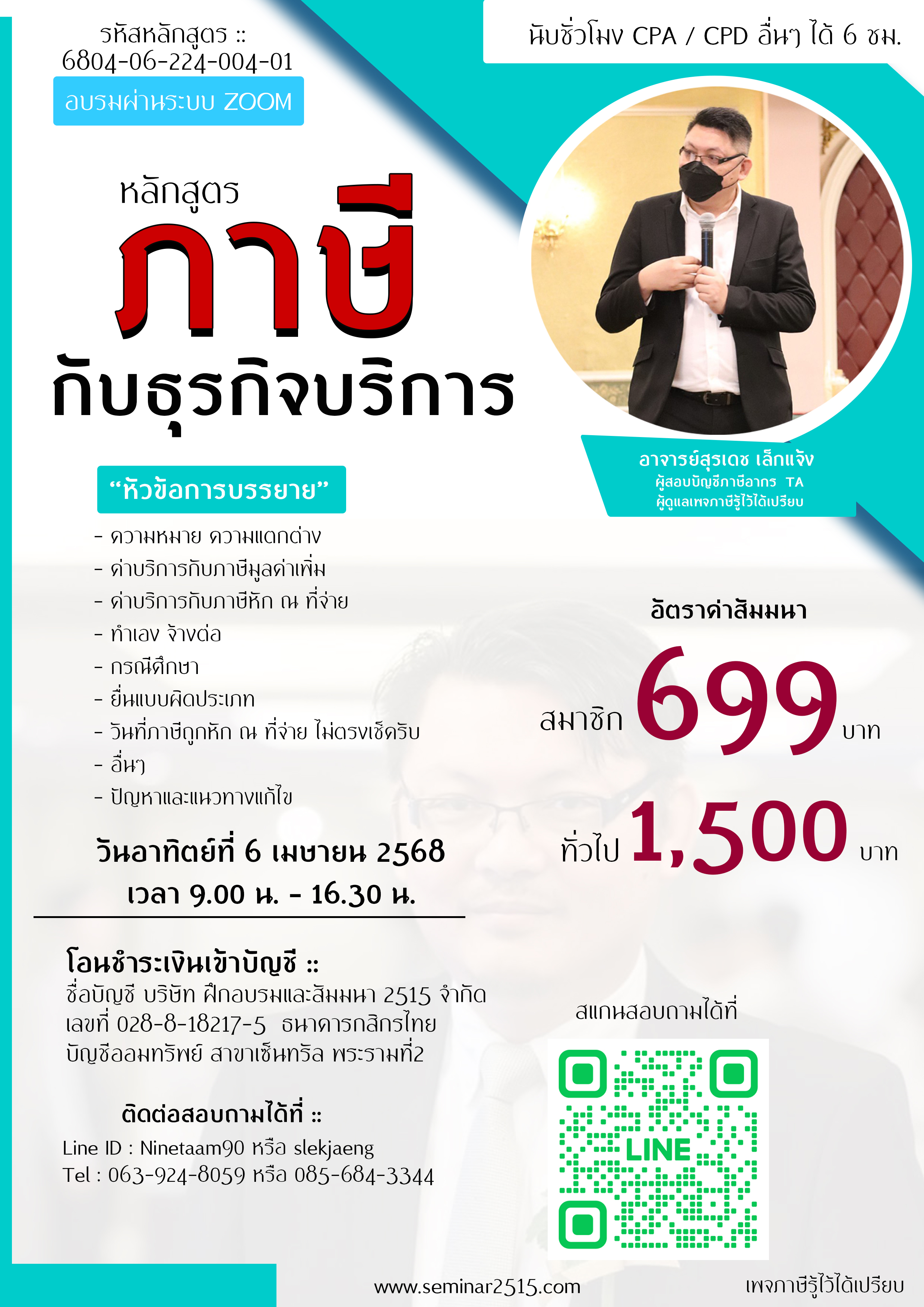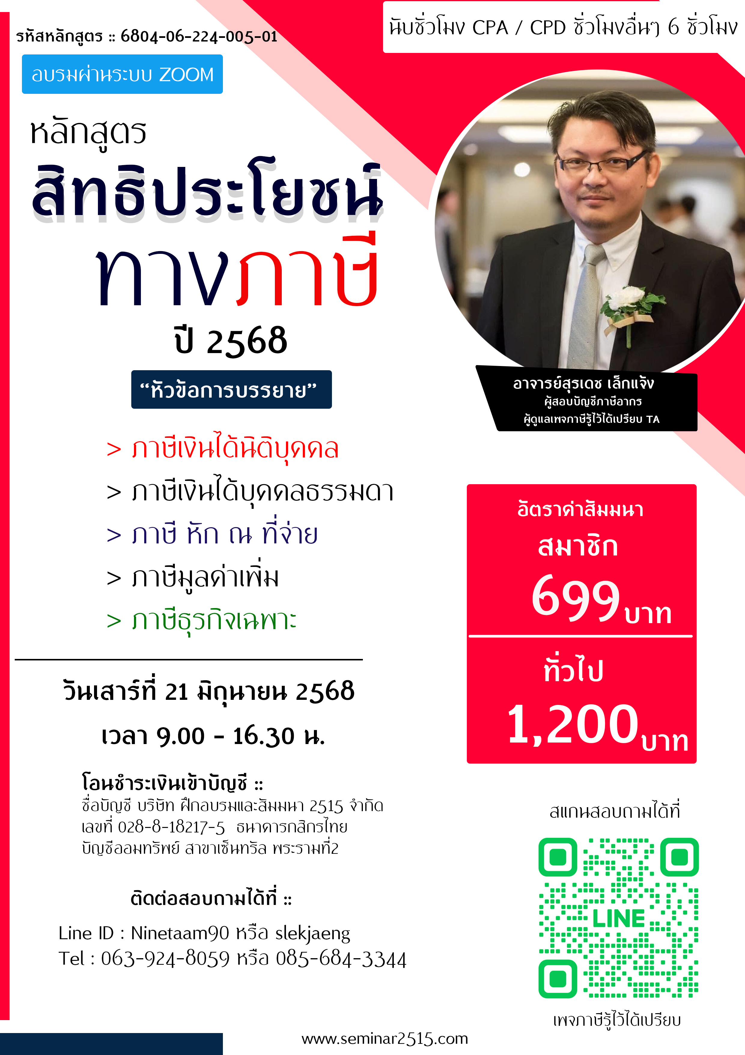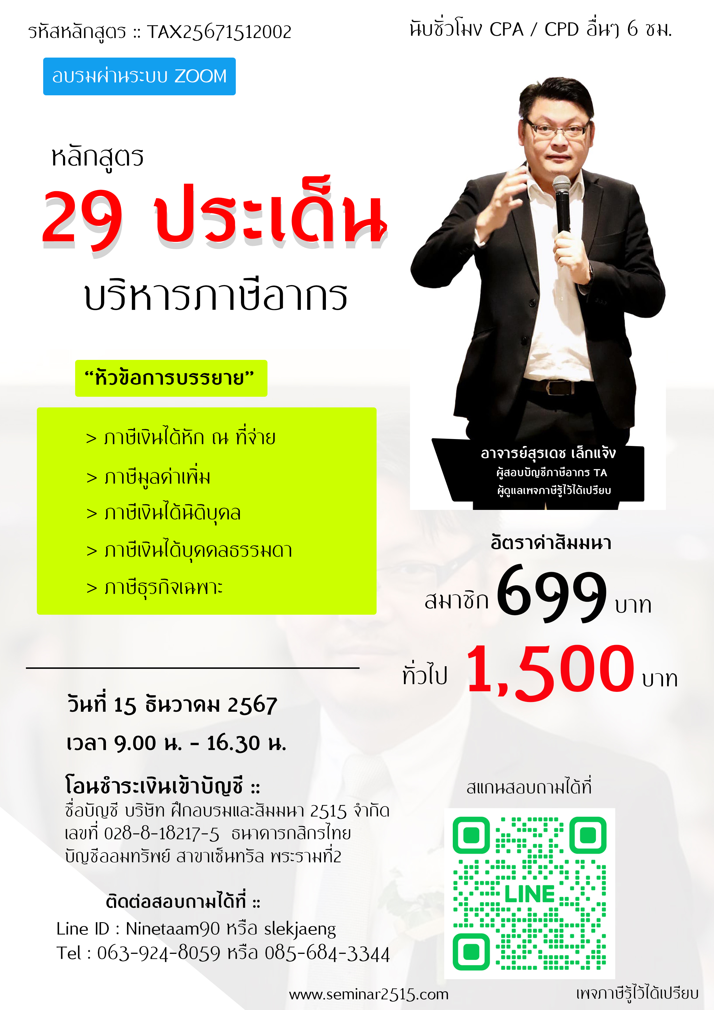 29 ประเด็นบริหารภาษีอากร วันที่ 15 ธันวาคม 2567 อบรมออนไลน์ (ผ่านระบบZOOM)