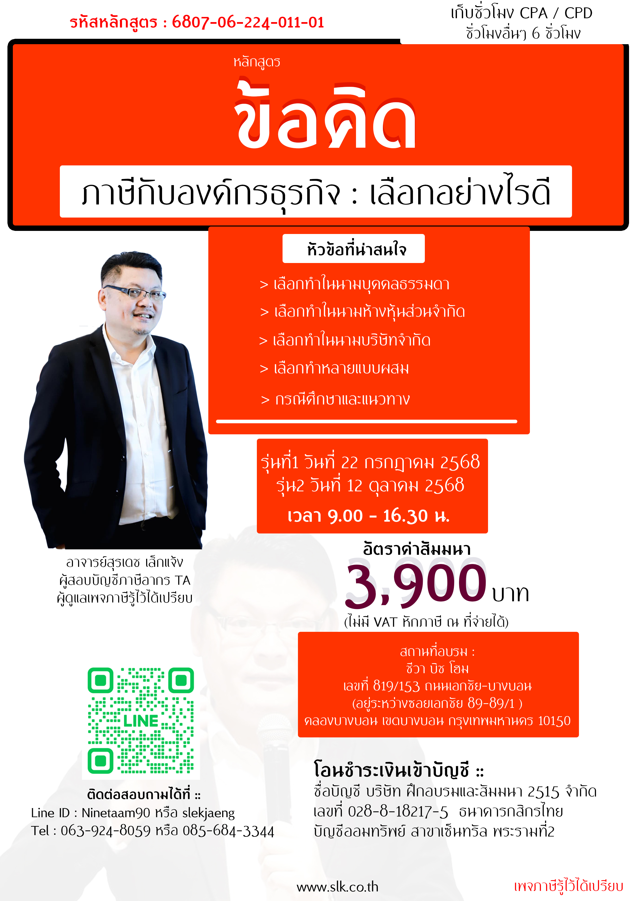 ข้อคิดภาษีกับองค์กร เลือกอย่างไรดี (รุ่นที่2)