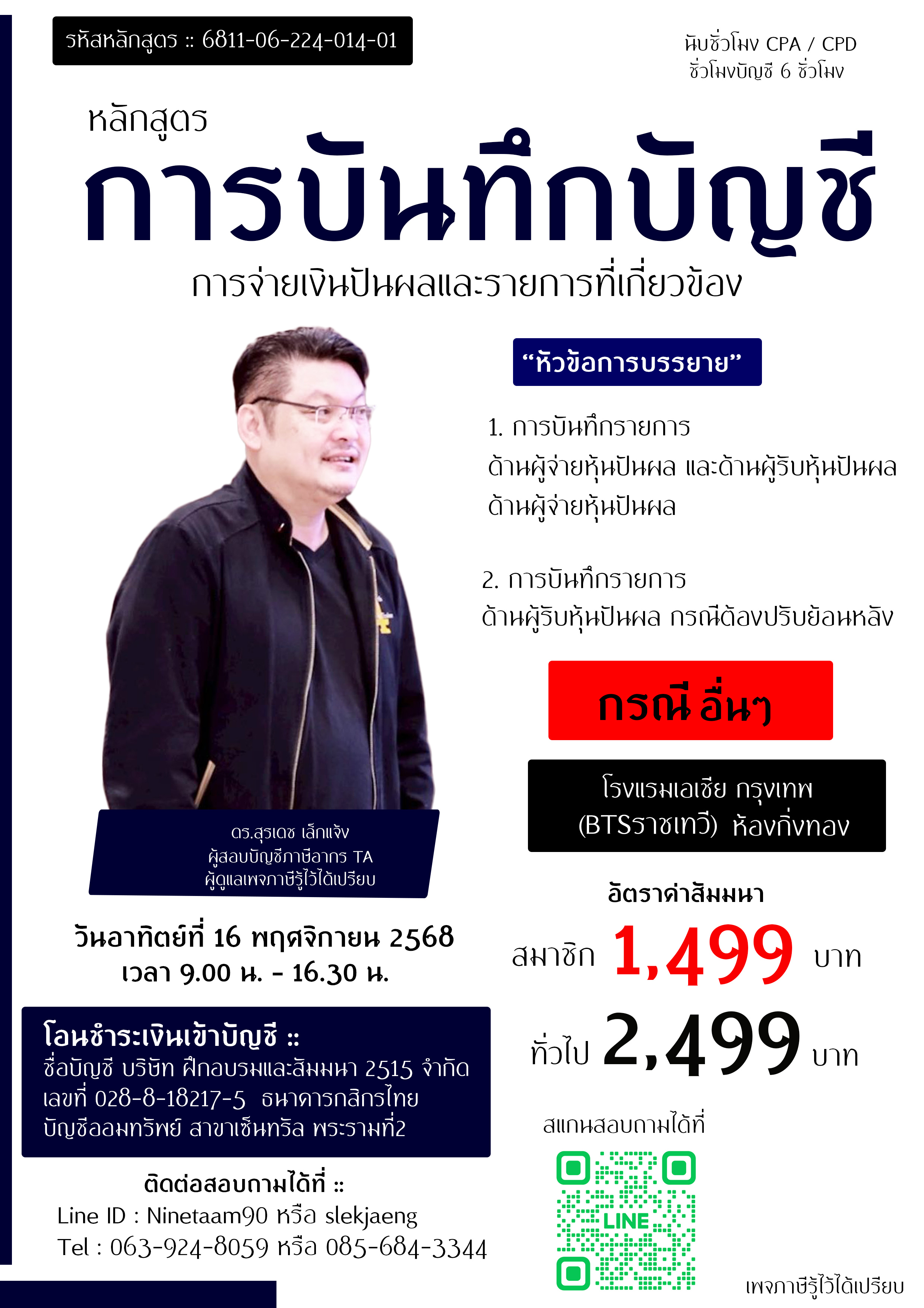 การบันทึกบัญชีการจ่ายเงินปันผลและรายการที่เกี่ยวข้อง