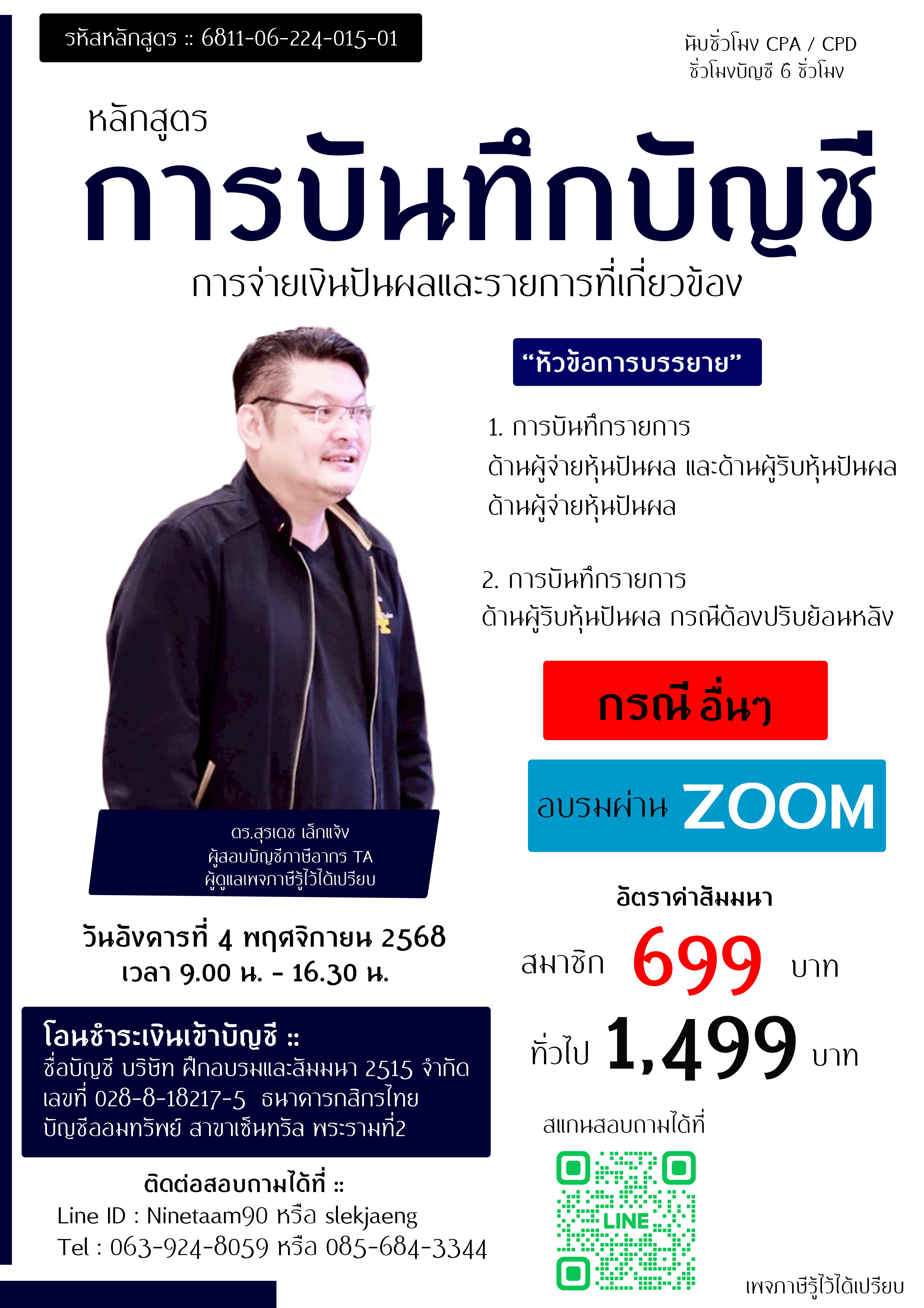 การบันทึกบัญชีการจ่ายเงินปันผลและรายการที่เกี่ยวข้อง ZOOM